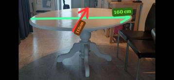 Grote, tweedehands ovale eettafel. Ideaal voor een groter gezin of gezellige etentjes. De tafel is gratis af te halen. Afmetingen: ongeveer 160 cm lang en 115 cm breed. Gebruikssporen aanwezig.
