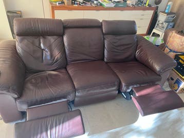 3-zits bank bruin leer met voetensteun en verstelbare hoofds