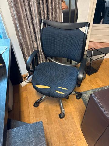Gebruikte blauwe bureaustoel. De stoel is nog functioneel, maar heeft wel wat slijtage op de zitting. Ideaal voor studenten of thuiswerkers met een klein budget. Bekijk de foto's voor de details.