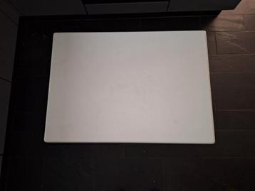 Gebruikt, maar in goede staat. Met handige opbergbakken onder het blad. Blad 50x70 cm. 64 En 70 cm hoog