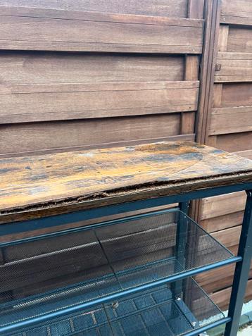 Schoenenrek met drie niveaus. De bovenste plank heeft vochtschade, zoals te zien op de foto's. Verder functioneert het prima.