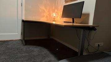 Ruim en verstelbaar bureau met een breedte van 200cm. Het bureau heeft een diepte van 80cm aan het korte stuk en 120cm aan het lange stuk. Ideaal voor thuiswerken of gaming. In hoogte verstelbaar voor