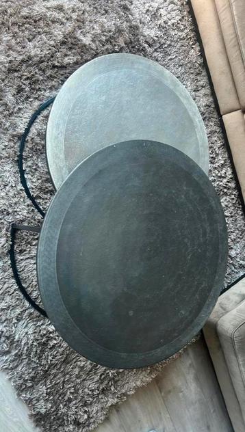 Mooie grijs/zilver/gouden salontafel set. Onderkant van de pootjes zijn wat beschadigd wat je dus niet ziet als hij gewoon op de grond staat