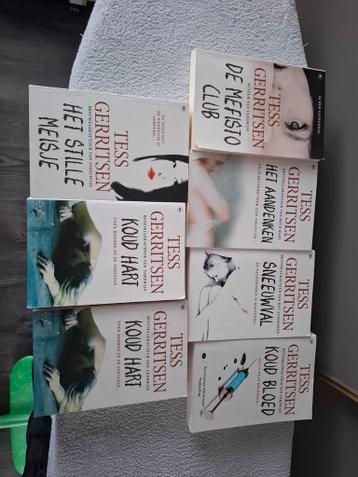 7 boeken van tess gerritsen. Titels: het stille meisje, koud hart (2x), de mefisto club, het aandenken, sneeuwval, koud bloed. Ophalen in spijkenisse, wijk vriesland. 2 Euro per boek.
