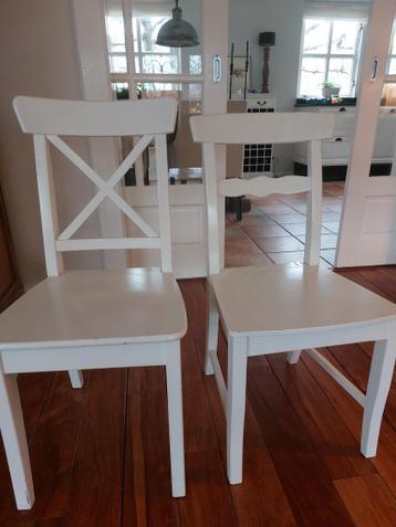 2 rechte houten eettafelstoelen van ikea