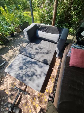 Compact slaapbankje in goede staat, alleen is de stoffen bekleding van het achterpaneel achter de rugkussens kapot (wij legden hier een doek overheen) verder prima, niet doorgezakt.
