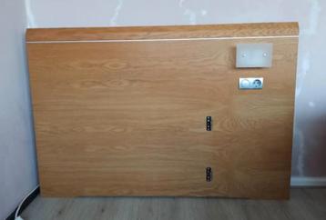 Hoofdbord voor een eenpersoons bed, compleet met nachtlampje en stopcontact. Alles werkt nog goed. Afmetingen: breedte 135cm hoogte 95cm diepte 13cm