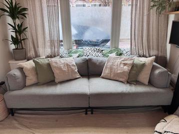 Grijze bank, gekocht bij karwei. Gebruikt, maar komt uit een huisdiervrij en rookvrij huis. Er zitten enkele gebruikssporen op, maar kan nog prima een ronde mee. De bank is in twee stukken te vervoere