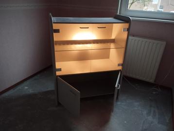Mooie vitrinekast met glazen deuren en planken. De kast is in goede staat en biedt veel opbergruimte. Ideaal voor het tentoonstellen van uw mooiste spullen. De kast heeft ook dichte deuren onderaan. A