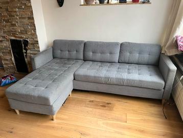 Gratis hoekbank. De hoek kan verplaatst worden van links naar rechts. Het is een fijne bank, maar flink gehavend aan de zijkanten door de katten. Verder zie je vlekken snel. Als je een druppel water m