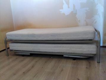 Bed met onderschuifbed . Onder het bed lig nog een bed. Wanneer dit er onderuit gehaald wordt en uitgeklapt word heb je twee bedde