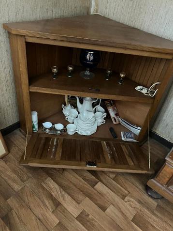 Hoekkastje de afmetingen zijn h 80 cm / breedte voorkant b 108 cm / diepte in midden naar punt vanaf voorkant d 60 cm de beide kor