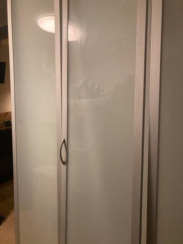 De deuren zijn met matglas. 1 Met handgreep, zonder schanieren zie foto’s het zijn 3 deuren . De deuren zijn 2.29 Bij 50 cm gratis, alleen ophalen