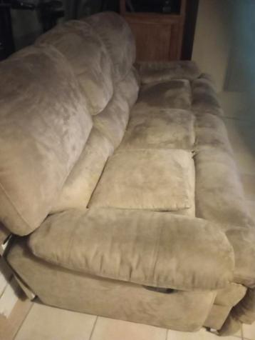 Bank met uitklapbare steun aan zowel de linker- als rechterkant. Op te halen in heiloo. Bank is gebruikt en zit op bepaalde plaatsen niet goed.
