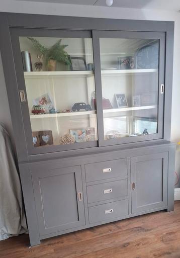 Stijlvolle vitrinekast met schuifdeuren en opbergruimte. De kast is in goede staat en biedt veel ruimte voor het uitstallen van spullen. Ideaal voor de woonkamer of eetkamer. Afmetingen zijn indicatie