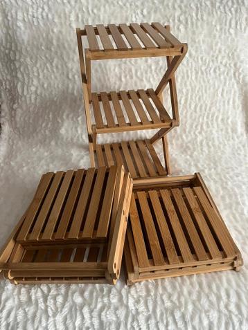 3x bamboe houten rekje 22x18 cm hoogte 35 cm ophalen in emmen