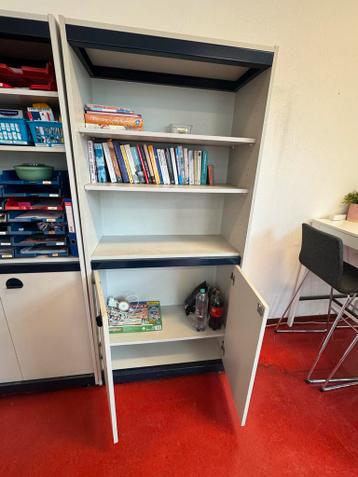 Zeer degelijke opbergkast met een combinatie van hout en metaal. De kast is 90,5 cm breed, 42,5 cm diep en 192,50 cm hoog. Ideaal voor het opbergen van spullen in huis of op kantoor. Betreft een van b