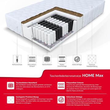 Fdm home max mattress 160x200 cm double sided pocket spring mattress hardness grade h3 h4 coconut 24cm high 7 comfort zones with hypoallergenic washable premium tijk oeko-tex standard 100