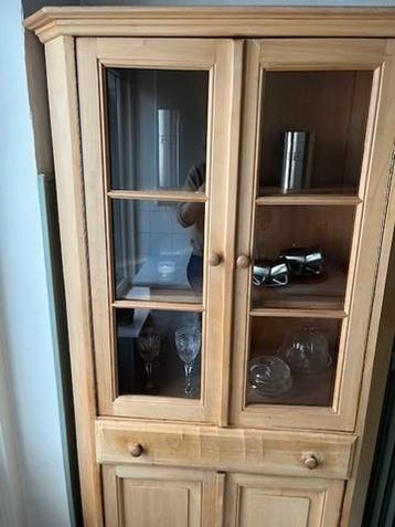 Grenen keukenkast (blank, dus ongelakt). Afmetingen: hoogte is 187 cm breedte is 97 cm diepte is 50 cm de 2 legplanken in het bovenste gedeelte van de kast zijn 38 cm diep.