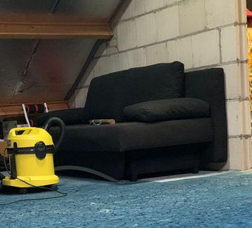 Wegens opruimen zolder af te halen. Stoffen slaapbank. Opbergruimte onder zittingdeel. Heeft helaas een keer een scheur gehad, is