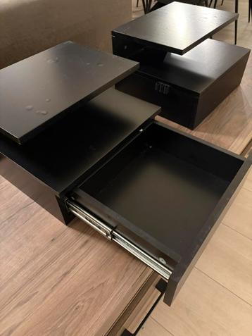 Twee gebruikte zwevende nachtkastjes in het zwart. De kastjes hebben een lade en een open vak. Ze zijn in goede staat en passen in