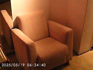 Lekker zittende lichte stoffen stoel. In nette staat en gratis af te halen