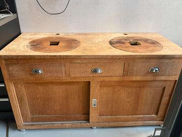 Leuk wastafelmeubel met 1 lade en 2 schuifdeuren met legplank. Voor opzet wasbakken.