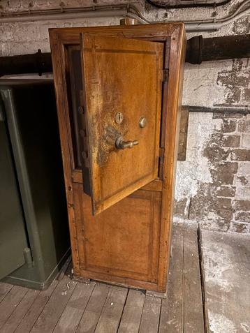 Drie oude kluizen te koop. De witte kluis is ongeveer 200cm hoog, de bruine kluis is ongeveer 180cm hoog en de groene kluis is ongeveer 150cm hoog. Ideaal voor decoratie of als functionele kluis. Zelf