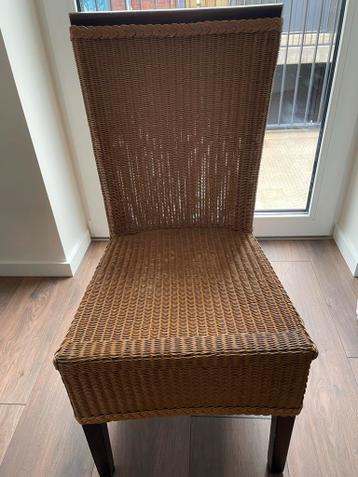 Complete rieten stoel te koop. De stoel vertoont gebruikerssporen, maar is verder in goede staat. Ideaal voor een landelijke of vintage inrichting.