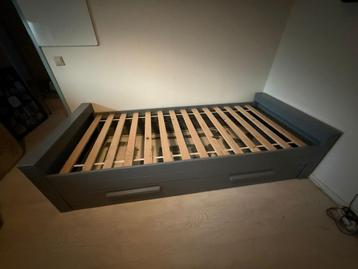 Gratis ophalen. Heeft een likje verf nodig. Een van de lattenbodem plankjes is gesplitst (zie foto) bijpassende bureau en nachtkastje ook beschikbaar zie andere advertenties.