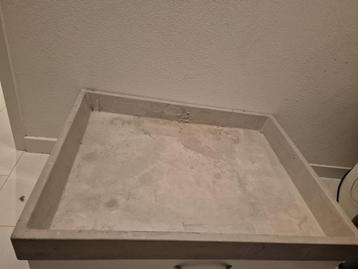 Stenen bak voor onder de wasmachine of droger. Lekbak even schoonmaken en kan weer jaren mee.