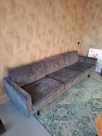 Donkergroene 3-persoons bank met velvet stof. De rits van het zitkussen links is kapot, maar kan eenvoudig vervangen worden. Verder is het een fijne bank die lekker zit en makkelijk schoon te houden i