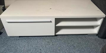 Modern tv-meubel met een strak design. Het meubel beschikt over een lade en open vakken voor het opbergen van apparatuur en accessoires. Ideaal voor een georganiseerde en stijlvolle woonkamer. Het sta