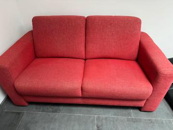 Gratis af te halen in horn: een rode stoffen bank bestaande uit een 2-zits en een 2,5-zits bank. Ideaal voor studenten of verenigingen die op zoek zijn naar een comfortabele en betaalbare zitoplossing
