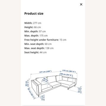Zonder hoezen! Die moet je bestellen op norsemaison of een andere website. Slechts 2 jaar oud! Echt een hele fijne bank! Stijlvolle grijze hoekbank met metalen poten. Afmetingen: breedte 277 cm, hoogt