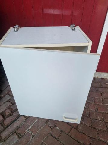 Dalfsen handig opbergkastje. Wit met ophanghaken aan de bovenzijde. Binnenin 1 legplank. Hoogte 59 cm breedte 49 cm diepte 31 cm
