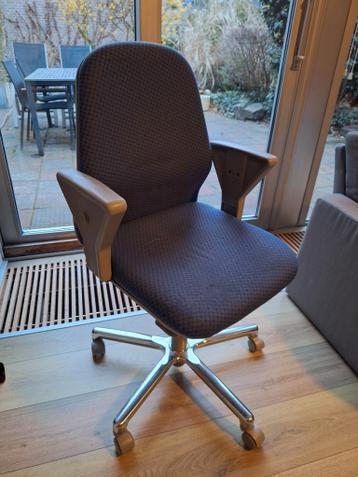 Degelijke bureaustoel op wieltjes. Zitvlak, rugleuning & armleuningen zijn verstelbaar voor een fijne zithouding. Stoel is gebruikt, maar kan nog mee. Dus gratis afhalen voor wie hier nog wat meer