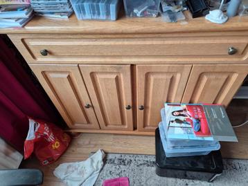 Mooi houten computermeubel met veel opbergruimte. Het meubel heeft deuren en planken, ideaal voor het opbergen van spullen. De bre