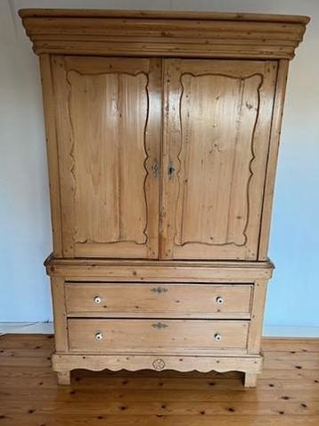 Oude grenen linnenkast met 2 lades en legplanken. De afmetingen van de kast zijn: - breedte: 125 cm - hoogte: 195 cm - diepte: 45 cm de kast staat op de 1ste etage en het bovenste gedeelte van de kast