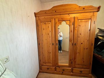 Kledingkast, grenen hanggedeelte en gedeelte met planken onder 3 laden 163 breed, 57 diep gratis af te halen in groot-ammers moet