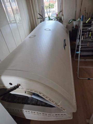 Goed werkende zonnebank met gezichtsbruiner.ik verkoop dit omdat ik hem niet meer gebruik en in de weg staat. Hij moet wel zelf naar beneden gehaald worden. De conditie is goed, bruind nog goed omdat
