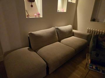 Bank + hocker, hocker is los van de bank, en een deel van de bank is weg. Als je de hocker er tegen aan hebt zie je niks. Op te halen in amsterdam, zoals in de laatste foto te zien, is het onderste zw