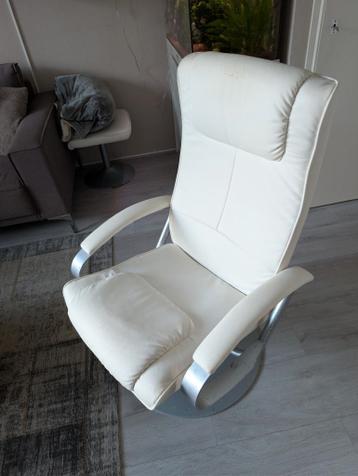 Gratis af te halen. In verband met de aanschaf van een nieuwe mag deze weg. Kunstlederen draai stoel met los voetenbankje. De rugleuning is verstelbaar. Wat lichte gebruikssporen, zie foto's, maar