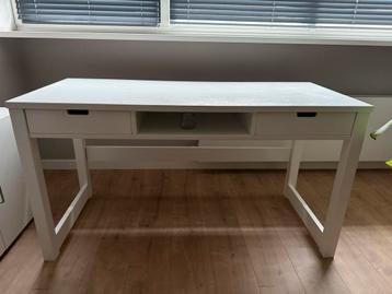 Bopita bureau met 2 schuifladen. Op het werkblad zijn gebruikssporen aanwezig, zie foto's. Even schuren en lakken en hij is weer als nieuw. Breedte 140cm diepte 60cm hoogte 76cm gratis af te halen