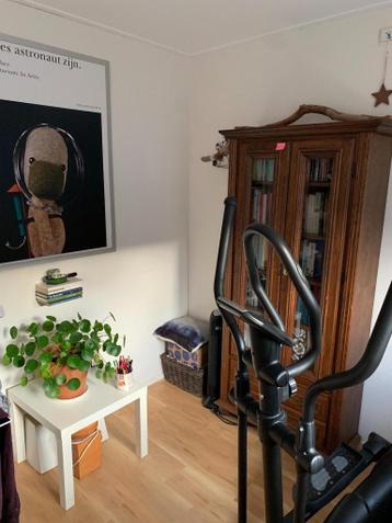 Let op: grote auto/aanhanger/busje is nodig voor vervoer!!! Niet ontzettend zwaar, wel net te groot voor in een auto met een smalle achterbak. Houten boekenkast met twee laden en glazen deurtjes. Plan