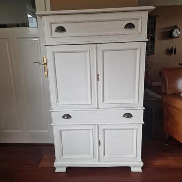 Met krijtwit behandelde televisiekast. Eventueel met werkende 32 inch philips tv. Heeft veel bergruimte. Moet snel weg.