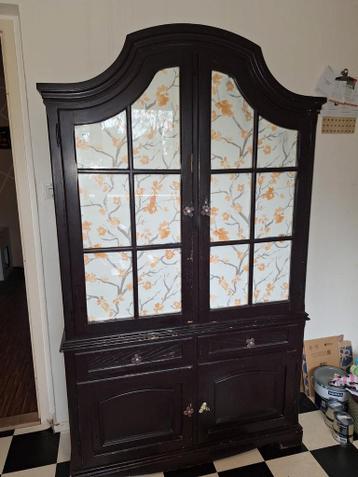 In verband met nieuwe inrichting mag deze kast gratis opgehaald worden. Kast heeft wat liefde nodig, maar heeft zeker potentie! Glas is intact, zit nu behang tegenaan. Afmetingen: hoogte: 195 cm breed
