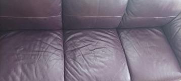 Kleur donker paars. Bank is z.g.a.n. Geen scheuren geen krassen en niet doorgezakt. Wegens overcompleet. Gaat hij weg.
