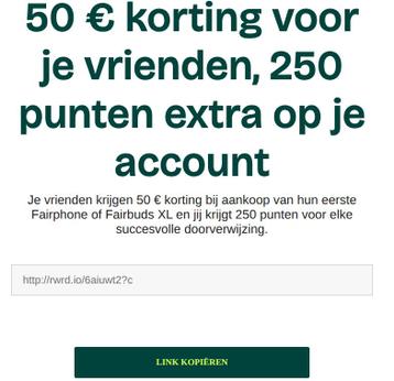 Krijg 50 euro korting op een fairphone telefoon of koptelefoon gebruik de code uit de tekst of scan de qr lukt het? Graag een beri