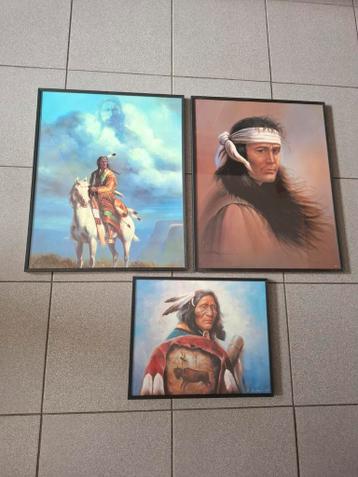 Een drietal lijsten waarvan 2 van 50 x 40 cm en 1 van 35 x 28 cm . Indianen afbeeldingen. Gratis af te halen.